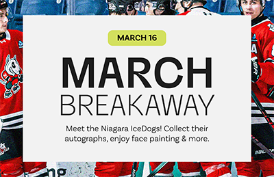 The Niagara IceDogs are coming to Niagara Pen Centre for an exclusive autograph session! Collect autographs, snap a few selfies, and enjoy the excitement as the IceDogs takeover the centre for one action-packed day. Plus enjoy face painting & more!